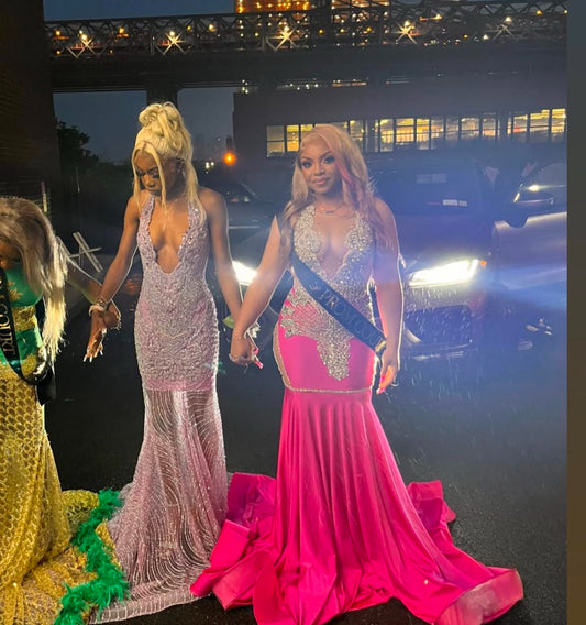 Pink Rhinestone Prom Dress